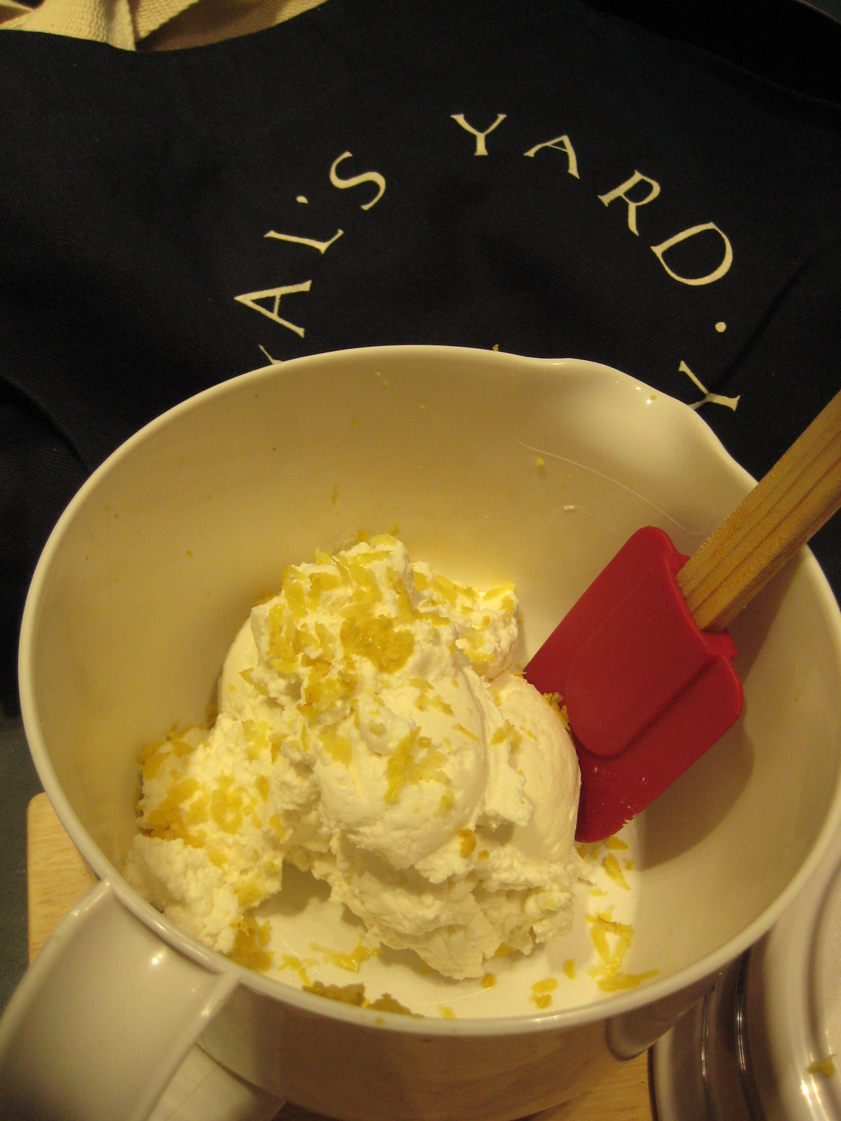 3.Put the goat’s curd, the lemon juice and zest in a bowl and whisk it gently together by hand. Fergus points out that doing it by hand is important- an electric mixer may ‘overwork the curd’. And much like me, curd hates to be overworked.