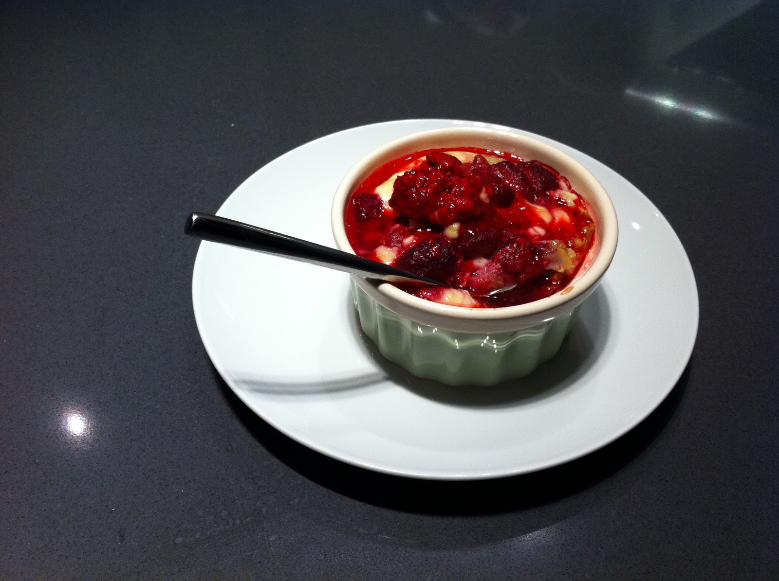 Comfort food for me involves fuchsia berries, custard and some carbohydrates.