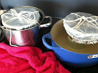 8. Put the puddings in a pot that fits them and fill with boiling water, a third of the way up the sides. Put the lids on and boil them at a slow, gentle plop for five hours (NB, check on the puddings ever now and again and top up with boiling water if needed- the last thing you want is for the pot to boil dry).