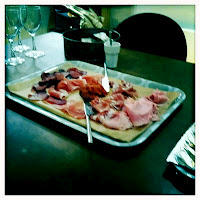 A platter of charcuterie with pane con tomate. There was smoked leg ham, some jamon serrano, air dried venison and a good splodge of nduja ( a spreadable spicy paste, like the good stuff from the inside of a salami).
