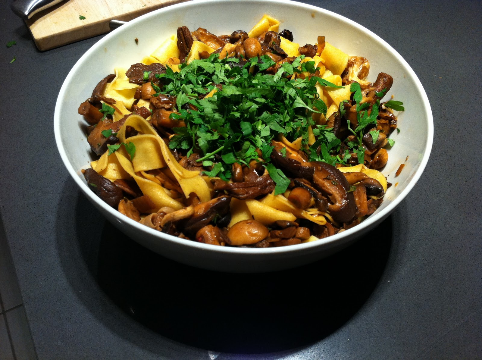 The mess of mushrooms went over some over fat strands of fresh egg tagliatelle with a handful of parsley over the top. Above that was an embarrassment of grated parmesan.