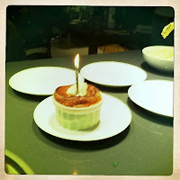 Roasted banana souffles with passionfruit marscapone.