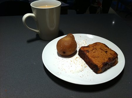 Dinner was lovely. But the next day there were poached pears that were just sitting there, with a light tan and a gentle sideline in sugar and spice.