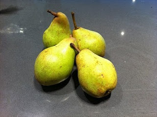Yet with the help of my kitchen company; four greenish pears, I brought it back.