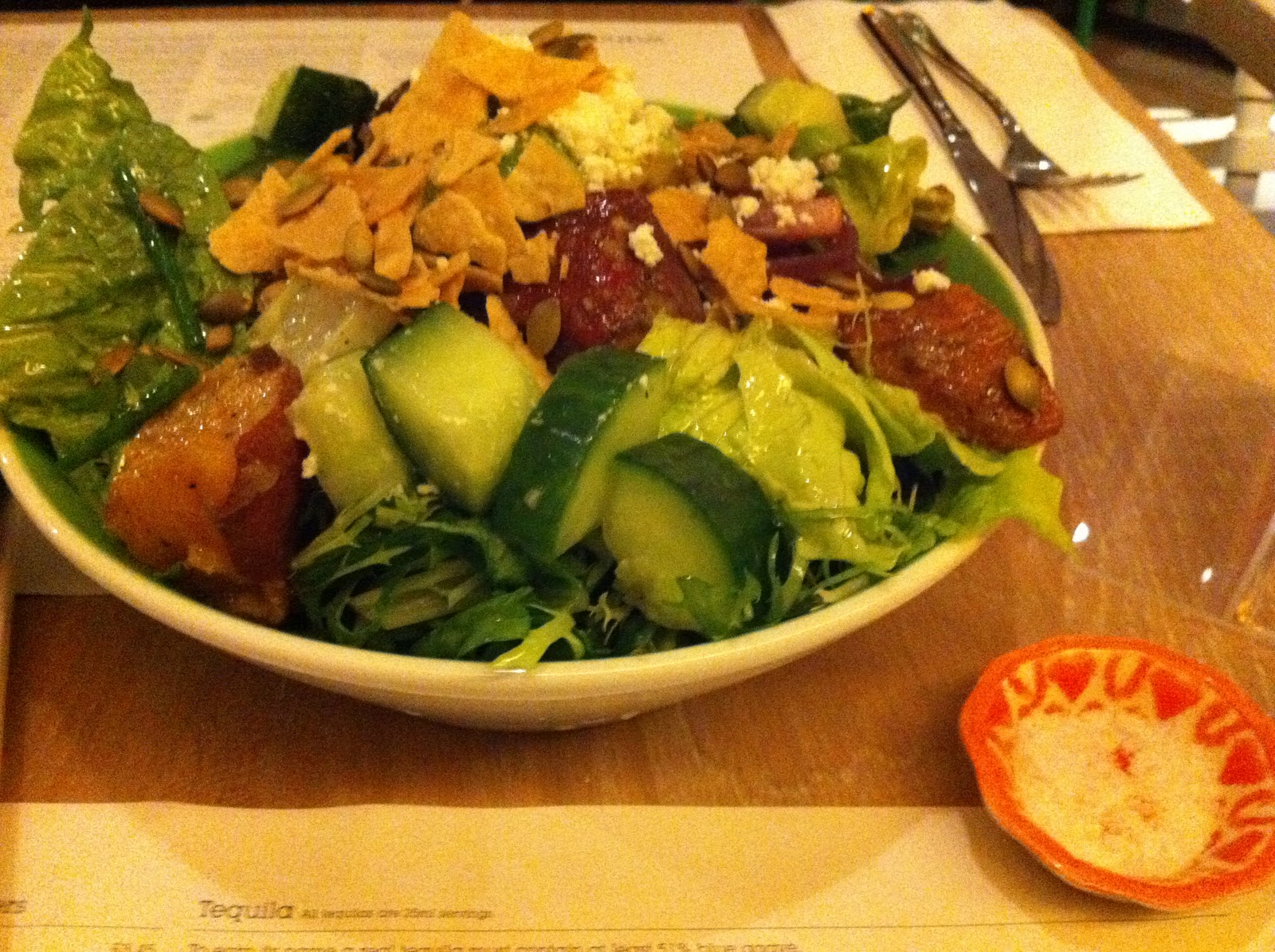The ‘Wahaca selection’ also brings some black bean tostadas and chicken taquitos. Both the beans and the chicken have gruntish flavours, the chicken smokey, the beans deep and savoury- but if you’re like me you might get overwhelmed with the degree of frying and crunch that comes with taquitos and tostadas.