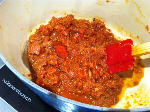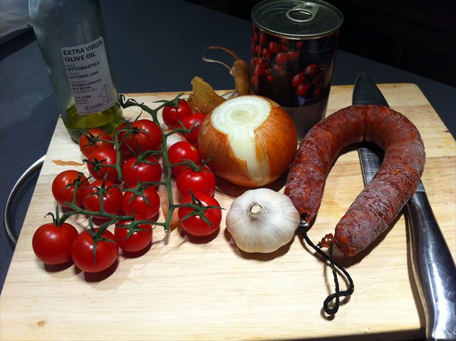 It’s still made up of the holy trinity of onion, garlic and tomatoes. But it’s also circles of a good spicy chorizo.