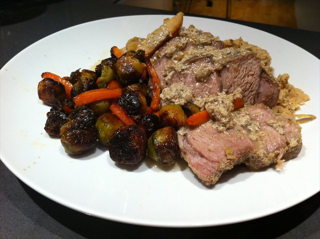 We ate it over mashed cannellini beans, with roasted carrots and brussel sprouts on the side.