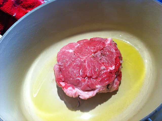 2. Season the pork with salt and pepper. Brown it all over in the olive oil so it gets a good crust.