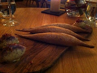 Here is another thing I like. I like warm bread. And I like butter. Always have, always will. So it makes sense that this following derivation of the staple blew me away. There are three elegant ficelles, made in house. The crust has guts, but the interior is soft and welcoming. With them is a cloud of whipped brown butter, adorned with skerricks of crispy chicken skin and a savoury powder of purple potato.