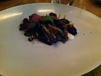 Venison is like a wander in the forrest, in search of Bambi. We find her in the centre of a salad, seared and lightly charred amidst jerusalem artichokes, blackberries and mushrooms.