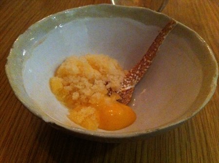 It’s an alchemic combination. When you eat it the melting pig fat adds a subtle sheen to your lips. It’s served with a miniature martini glass of chilled sake and a hot towel. It is one of the sexiest things I’ve ever eaten. Superb.