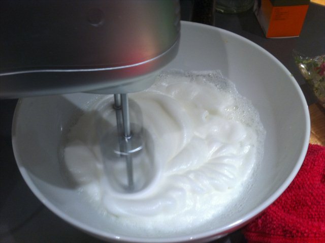 7) Whisk the egg whites until stiff.