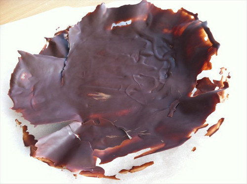 Line a dinner plate with greaseproof paper. Pour the melted chocolate over the paper and smooth it out until it creates a smooth, thin disc.