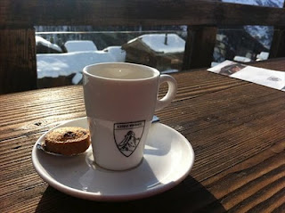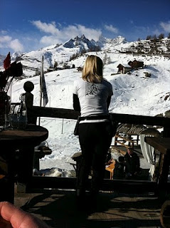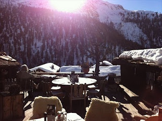 All around us are fellow skiers and boarders, slowly peeling off layers in the warm sunlight. Many have a bottle of wine perched in front of them, like a half finished project plan.