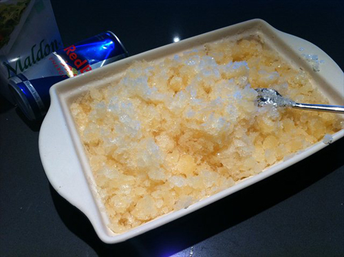 5. Continue freezing and scraping every 20 minutes until everything is fluffy icicles.