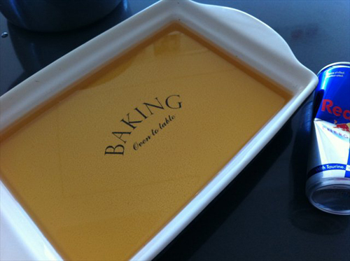 4. Place the pan in the freezer. Every 20 -30 minutes pull the pan out and rake it with a fork to break the frozen sections into shavings.
