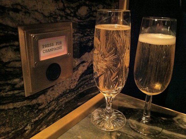 For one, it’s the sheer novelty value. Mere seconds after you push it someone will appear by your side, offering champagne.
