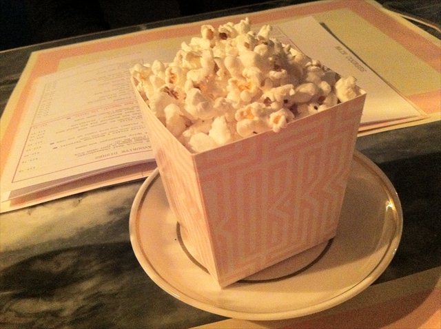 For us tonight to start there’s the aforementioned ‘Bob corn’; a whimsically striped box of warm baby popcorn, jazzed up with sugar, salt and pepper (£1.50).