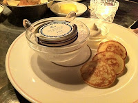 The menu treads a line between Russian classics; from caviar on ice and blinis to British comfort food, like beef wellington, or roast leg of lamb for two.