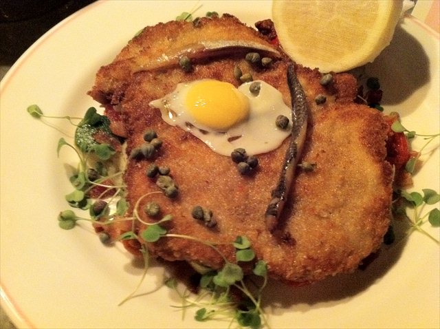 Other winners that we find include the Veal Holstein; a stout slab of pink meat that’s been breaded and fried that sits over a mound of truffled mashed potato.