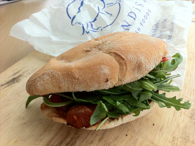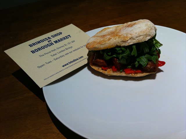 (Nb, you at Brindisa you can have your roll with either a single strip of chorizo, or a double. I tend to think a single is sufficient. I think you can guess which kind The Hungry One prefers).