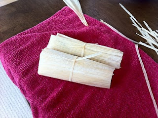 Then there’s the whole rigmarole of the casing. Both the stuffing and the dough need to be rolled up in softened corn husks. And then they get steamed.