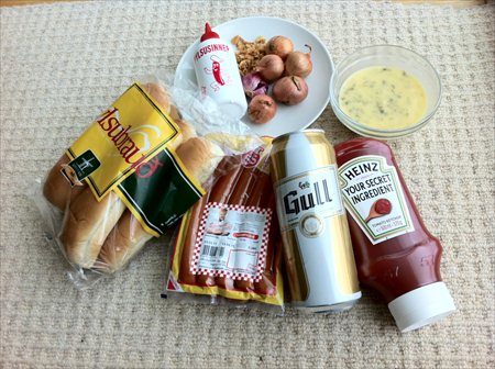 1. Braise the pylsur in the beer until they are hot.