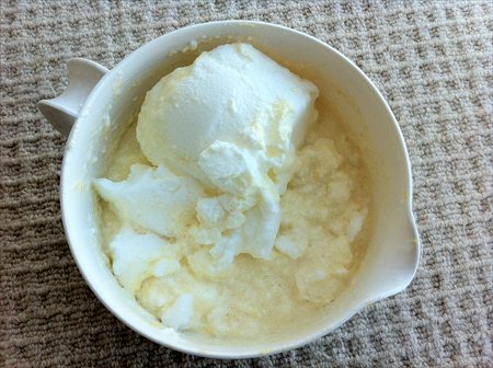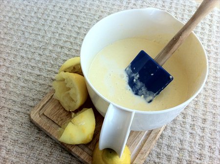 (You will need about three quarters of a cup of lemon juice. NB, the zest of three lemons will give a very lemon flavoured pudding. You might want to add the zest of two, taste the mixture and then if you’re comfortable with boosting the lemon flavour, adding the zest of the third).