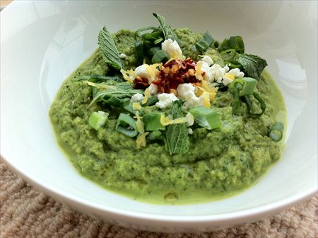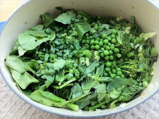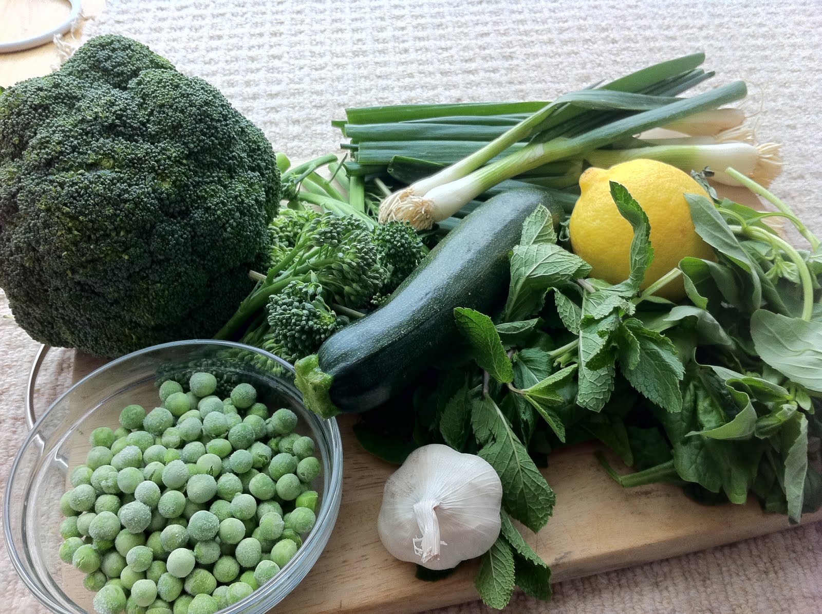 So that afternoon at the market into the basket went things that were green. Spinach. Spring onions Broccoli. Broccolini. Zuchinni. Mint. Basil. I knew that lurking in the freezer there would be some sweet frozen peas. They would all make fine friends with a blender and later; be adorned with buoyant bits of chilli, lemon zest and a wee crumble of goat’s curd. Calming but lively. Green and very good.