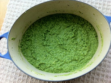 9. Allow to cool slightly and then take to the soup with a stick blender, judiciously blending until the soup is smooth.