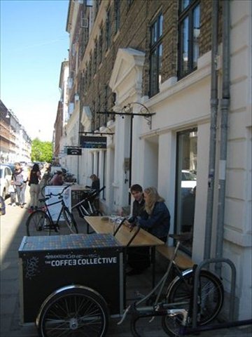 The Coffee Collective is in an area that smacks a little of Brooklyn, East London and Sydney’s Surry Hills. There are plenty of nifty shops and the streets are scattered with artfully disheveled folk nursing an iphone in one hand and either wheeling a bicycle or a stroller with the other.