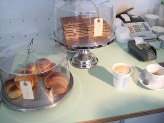 There are croissants to nibble on and a cake stand protecting a pile of hindbaersnittle- robust squares of slice that best resemble bakewell tarts.