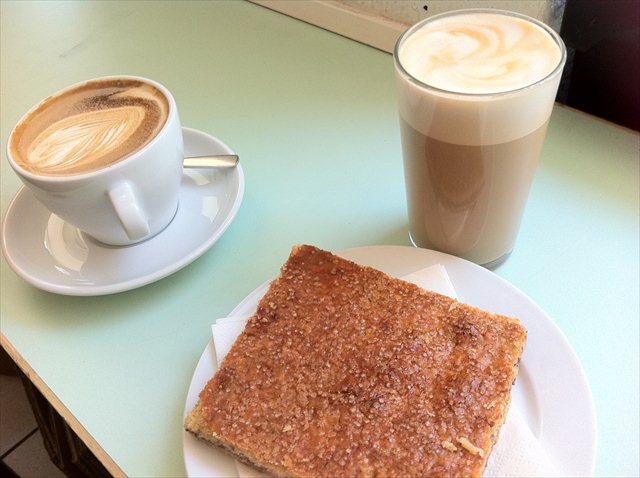 What comes out of the La Marzocco machine is very good indeed. The lattes are very long, heavy on the milk. So if you’re more of a flat white drinker, then a cappuccino is what you want to order. It’s a neat muddle of milk that leaves an artful pattern echoed in the crema.