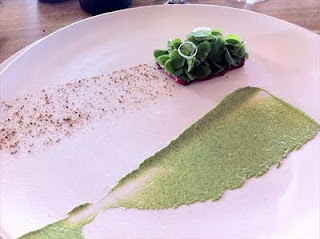 The relaxed tone also filters through to how you eat the dishes. I lost count of how many were served without cutlery. Using your fingers to get in there, lick and swipe seems to be part of the experience. So when a beef tartare, garnished with wood sorrel comes next to a painterly smear of tarragon cream (and without cutlery) there’s little to stop me getting my hands into it.