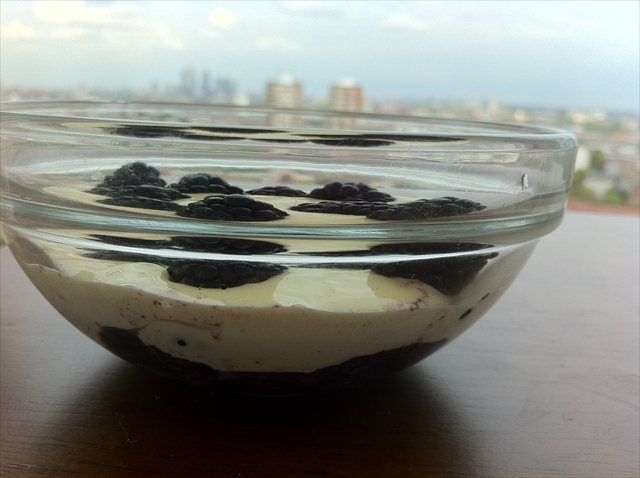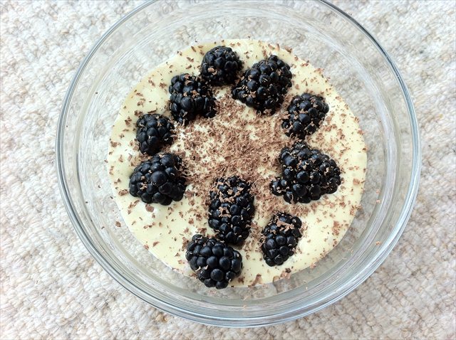 We eat it with a tumble of blackberries and a dusting of dark chocolate. We both agree it’s a keeper.