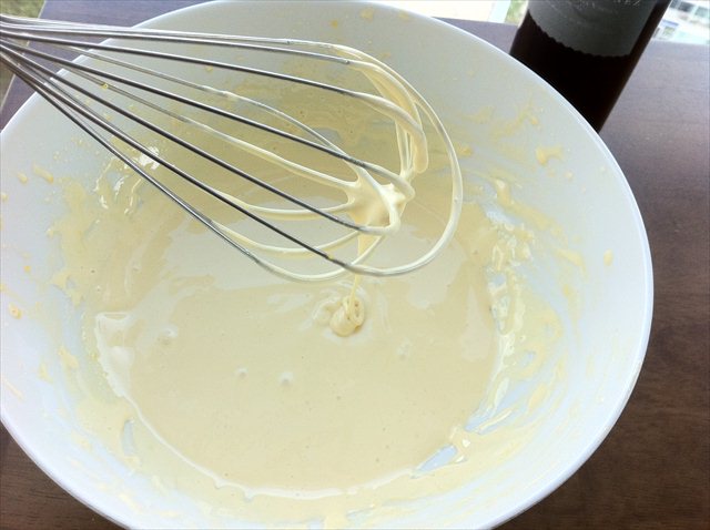 2. When the mixture is pretty foamy add one tablespoon of Pedro. Keep whisking.
