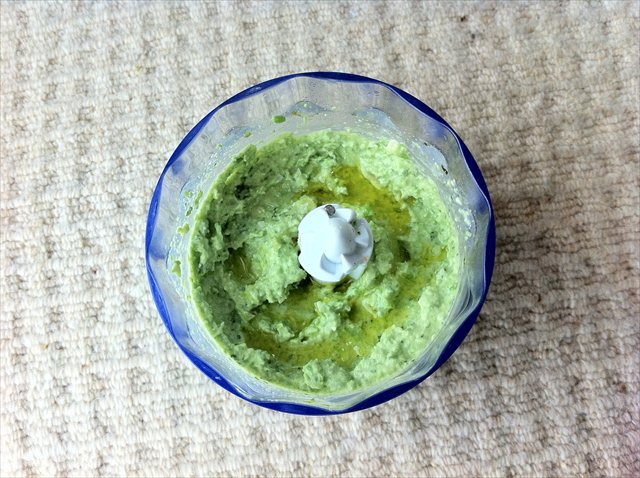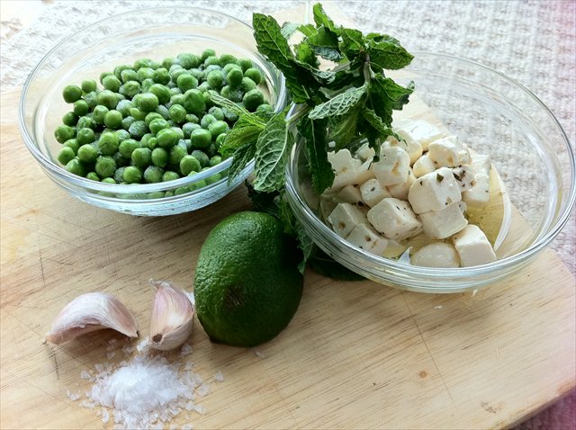 The best thing about it, is there’s no cooking involved. I don’t even have to defrost the peas. If I make it an hour or so before people turn up and then leave it out on the table, it will slowly come to room temperature. It just happily sits there, patiently waiting to be joined by slices of baguette, grissini and your guests.