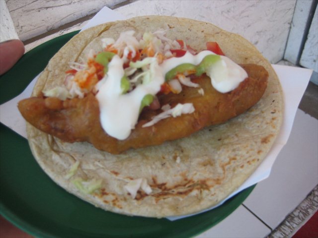 A true Baja fish taco has a crispy carapace of fried batter that protects flakes of white fish. There’s the earthiness of the corn tortilla and some pale and bitter crunch from shredded cabbage. Then there’s some fatty creaminess from a squirt of sour cream and the sniffingly sour burn of Tapatio chilli sauce.