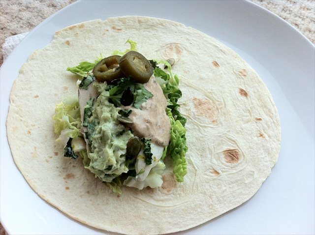 4. Assemble your own soft tacos, adding jalapenos and crema to taste.