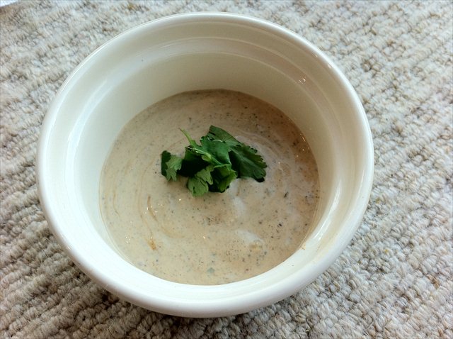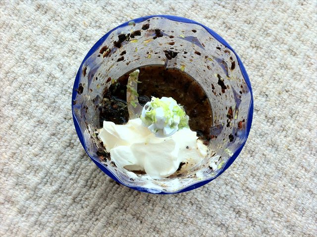 3. Keep one heaped teaspoon of the chipotle puree in the bottom of a blender (nb, you can freeze the remainder in an ice cube tray. It means there’s some on hand for next time you make tacos, burritos, enchiladas, pulled pork, etc). Add two tablespoons of creme fraiche and the zest and juice of half a lime. NB, if you didn’t have chipotles you could always use chipotle powder, or a combination of smoked bbq sauce and cayenne pepper.