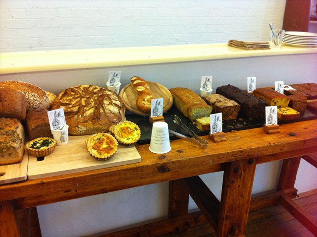 And now we come to things to eat. There are plenty of rustic loaf cakes on display for around £2 a slice. Orange and poppyseed is a particular winner.