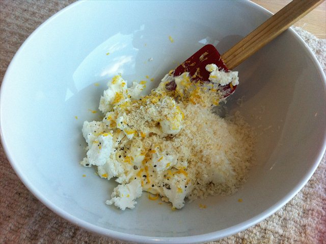 3.Combine the goat’s curd, cream cheese, mustard egg yolks and lemon zest until completely smooth. Season generously with pepper.