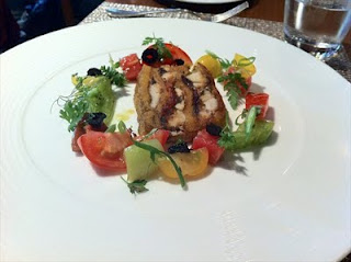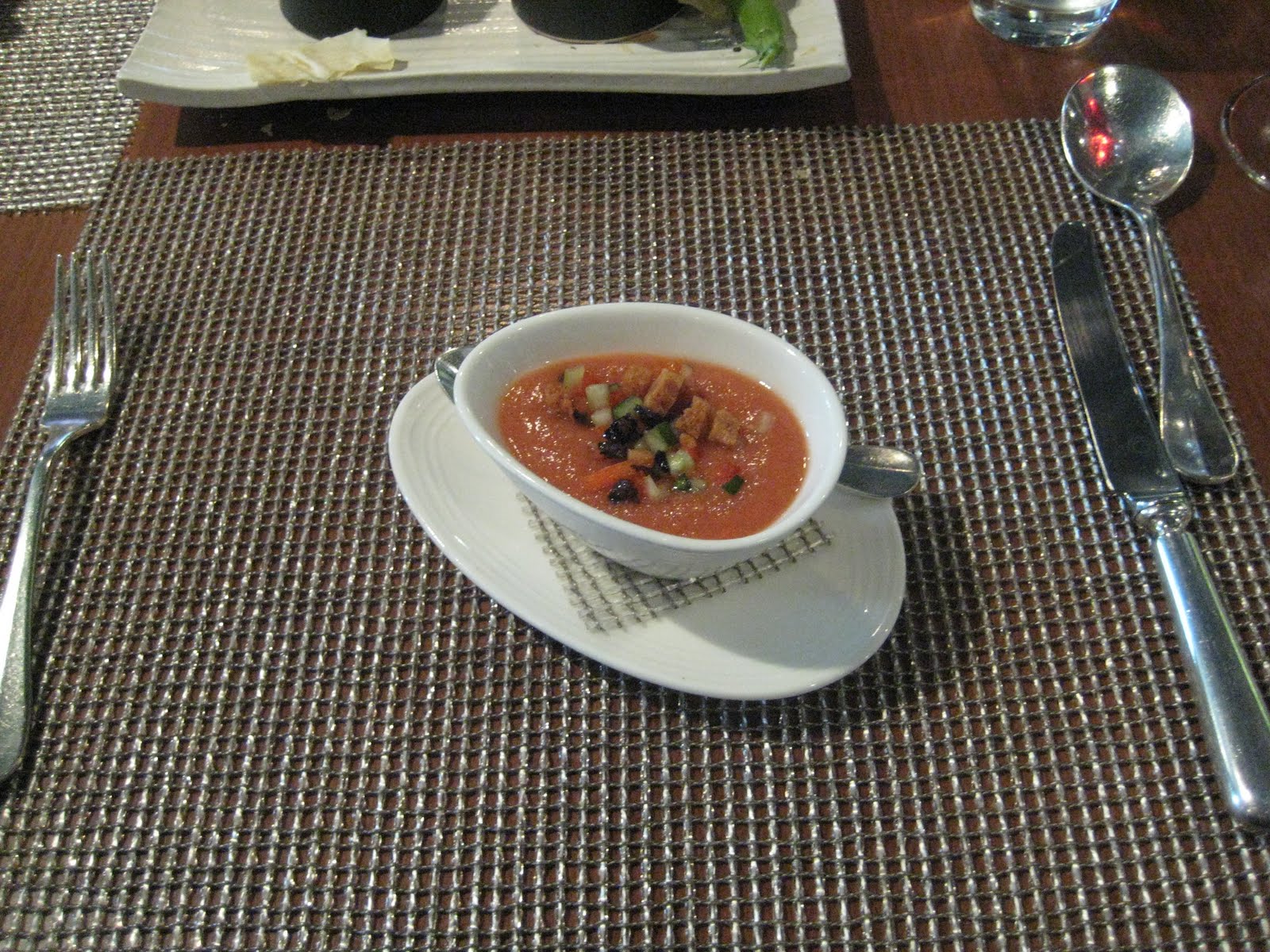 A small bowl of gazpacho is pocked with a lesson in knife skills; an itty brunioise of celery, red pepper and some croutons which shatter under tooth. The textures are lovely, but what makes it dance is a back note of acidity and heat. If an amuse bouche is supposed to amuse the mouth, this one fills the bill.