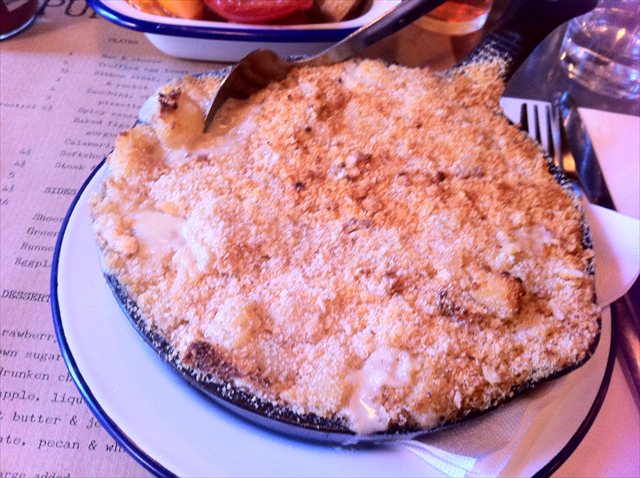 Mac and cheese comes in a portion built for sharing, or trouser busting.