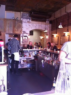 Then there are some other eye catching aspects to the place. Namely the staff. There are some impressive tattoos. Artful mops of hair and some soulful expressions. And beneath the East London checkered shirts there are pants which hang bloody low. So be prepared – in this small bar space where they’re frequently required to bend and scrape for necessary bits and pieces of equipment, you’ll often cop more than an eyeful.