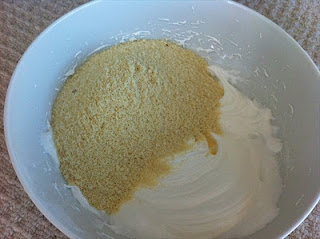 3. Mix the sugar and the almonds gently into it.