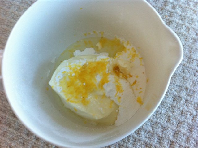 7. To make the cheesecake filling beat together the icing sugar, cream cheese, lemon zest and lemon juice until smooth.