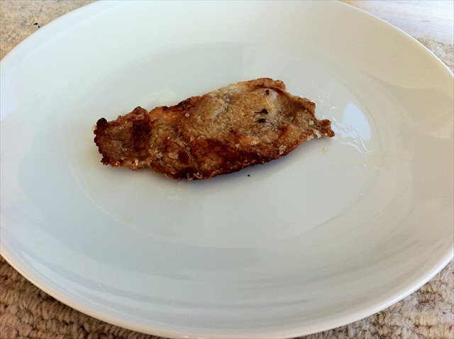 2 pieces of chicken skin (seperated from either the breast or the thigh)