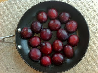 Prizing my dental work, and knowing I had flaked almonds in the cupboard I substituted plums, leaving their frayed stones in a neat pile to one side.