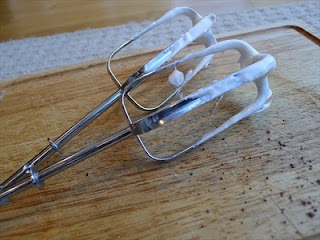 2. Beath the egg whites in a large bowl on high until soft peaks form. Add 3/4 of the cup of sugar and keep whipping until the sugar is completely dissolved. Add the remaining sugar, cinnamon, conrflour and lemon juice and gently fold in.